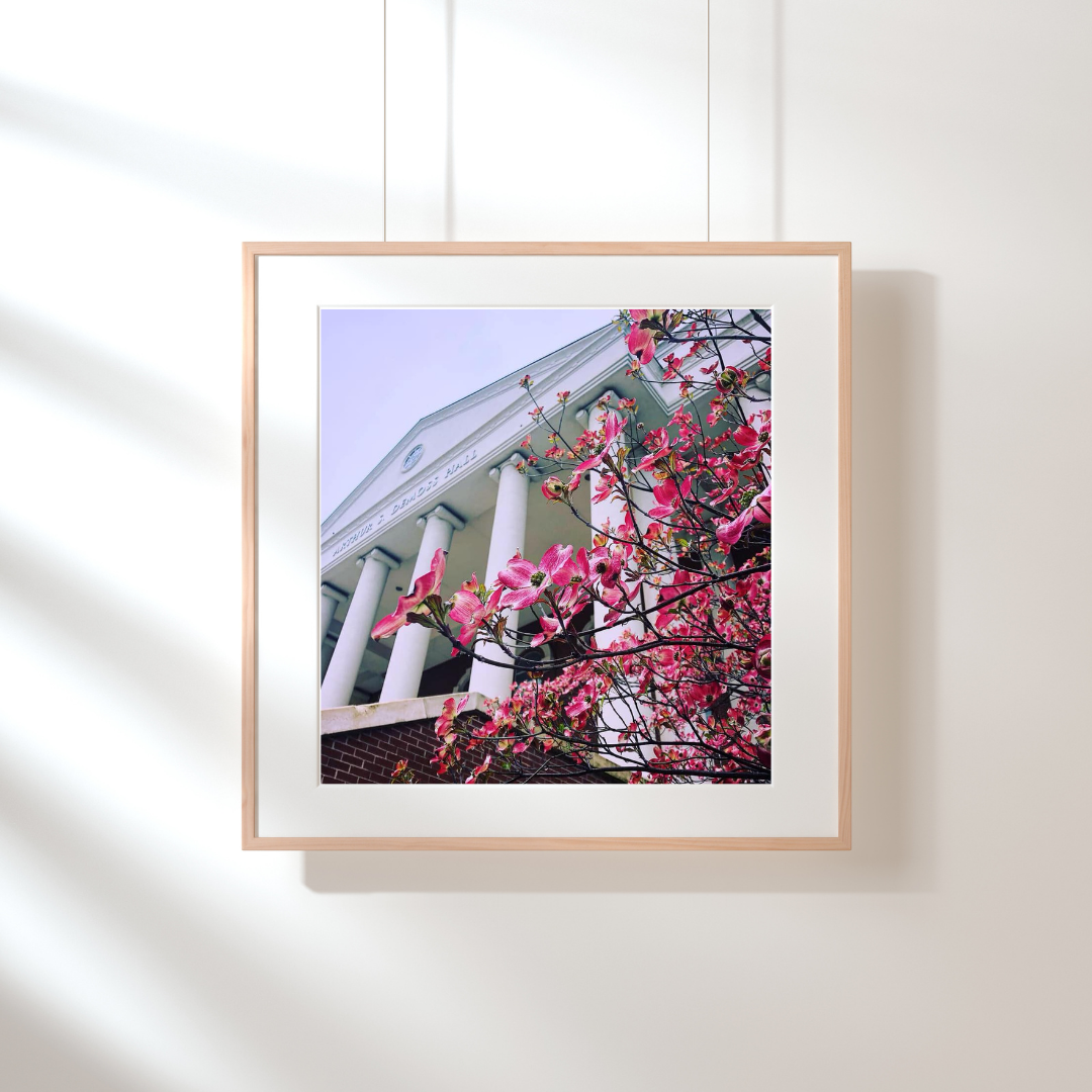 Picture of the building surrounded by flowers I primarily studied in at Liberty University.