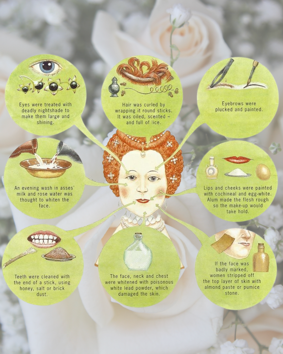 Household recipe books from the 16th century (such as those preserved in the Wellcome Collection manuscripts) include preparations for washing the face with rosewater, almond oil, and egg whites -substances meant to smooth and lighten the complexion without obvious artifice.